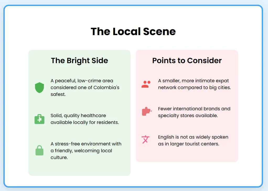 The expat community is growing but remains small enough that newcomers quickly become part of the local social fabric. Popular neighborhoods like Pinares and Circunvalar provide comfortable, social environments where expats connect easily. The community stays active without becoming overwhelming or cliquish.