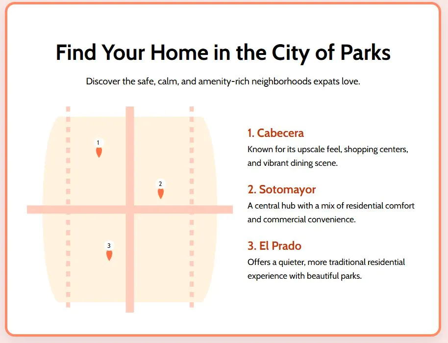 The city is widely regarded as one of Colombia’s safest, with clean streets, organized infrastructure, and low crime rates. Expats choose neighborhoods like Cabecera, Sotomayor, and El Prado for their high level of safety and amenities. The calm demeanor of residents creates a secure environment where you can walk confidently.
