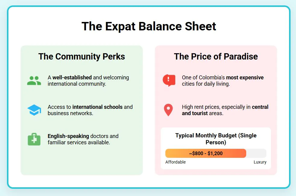 But expats pay high prices there for a good reason. There’s a strong international community. The expat network is well-built, with English-speaking doctors, international schools, and business connections that took years to create. You’ll find American-style drug stores, European restaurants, and cultural events that mix Colombian culture with what foreigners expect.
