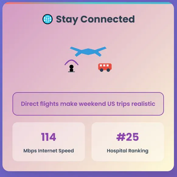 The direct flights, plus the efficient Megabús rapid transit system, offer seamless mobility. Weekend trips to the United States become realistic. Business travel doesn’t require planning around complicated connections. Family visits happen more frequently when flights are simple and direct.