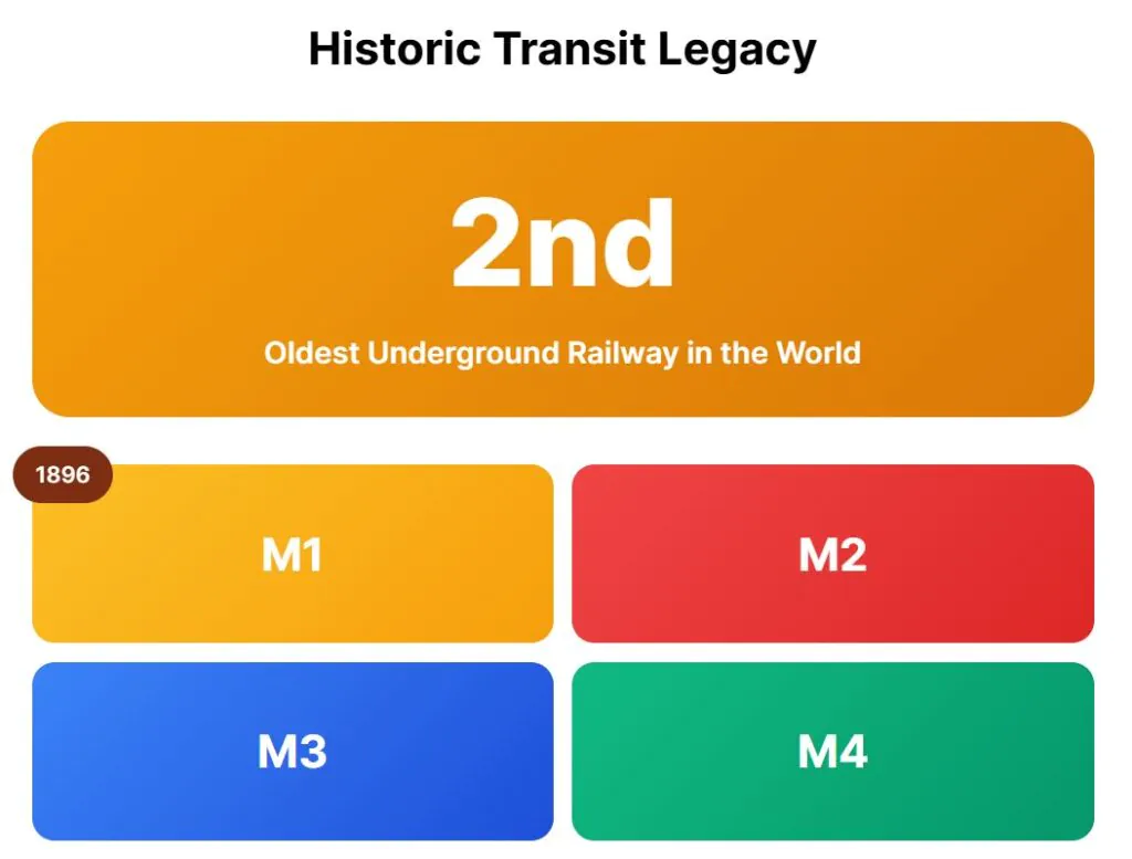 The network itself is highly integrated operationally. Four lines form the Metro system, with the historic M1 line linking the city center to the City Park, and the modern M2, M3, and M4 lines connecting virtually every major district. Around this strong core, a dense web of trams and buses fills most gaps.