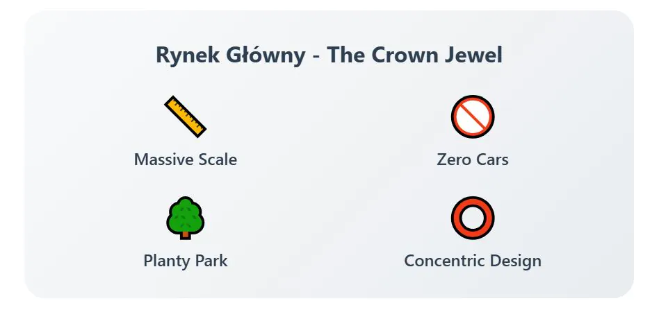 The city’s crown jewel is its Old Town, the Rynek Główny, which is one of the largest medieval squares in Europe and is entirely free of car traffic. This massive pedestrian zone is encircled by the Planty Krakowskie Park, a lush greenbelt that traces the path of the old city walls. You can conduct your entire daily life within this core on foot, surrounded by historically significant architecture. It is this physical layout that forms the foundation of its strong car-free credentials.