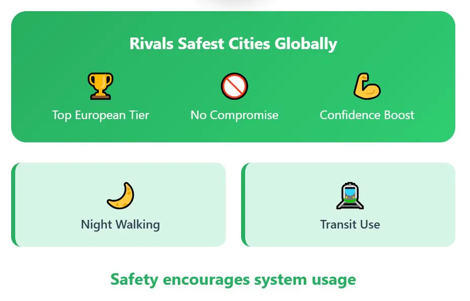 This model filters hype and rewards cities with proven rail, realistic costs, and streets where you can walk without much worry. And it overturns the myth that only high-priced Western capitals deliver safe, pedestrian-first living – so let’s jump to the ranking.