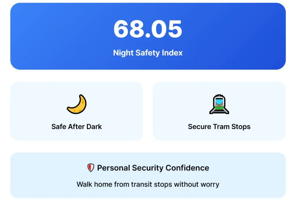 Safety and walkability make up the final 30%. We use two hard indicators: how many people say they feel safe walking alone at night, and national road fatality rates. Road deaths signal how serious a country is about protecting people outside cars. Perceived safety tells you if you’ll actually walk from the tram stop after dark without any major threat.