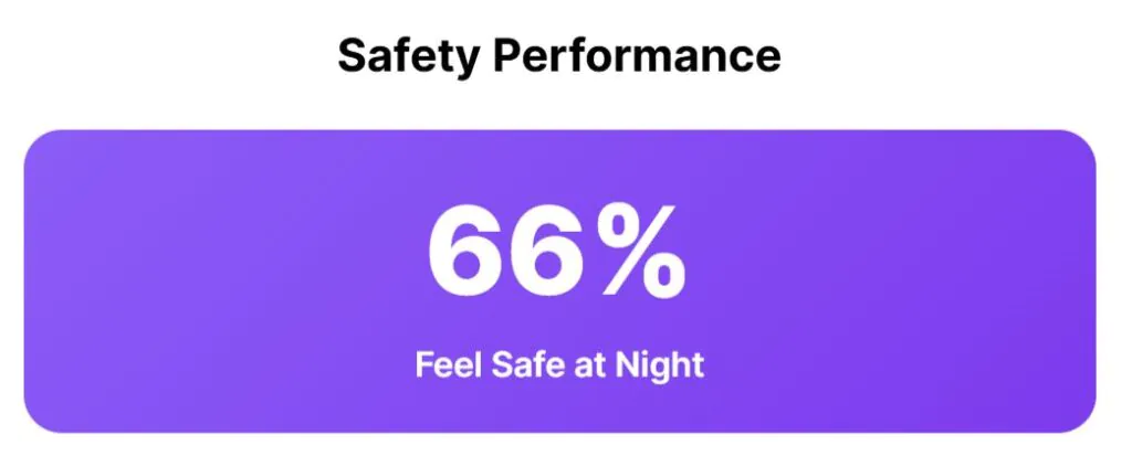 - Another city has such high safety that nearly 70% of people feel secure walking alone at night.