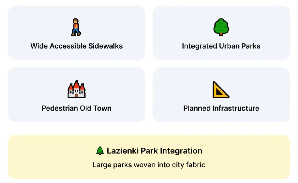 The city’s walkability is a product of its reconstruction. The destruction of the old city allowed planners to implement wide, accessible sidewalks and a network of large urban parks, such as Łazienki Park, which are woven into the city fabric. They also recreated a large pedestrian-only zone in the Old Town, creating a pleasant and safe environment for walking. The next city is very similar to Warsaw, but cheaper!
