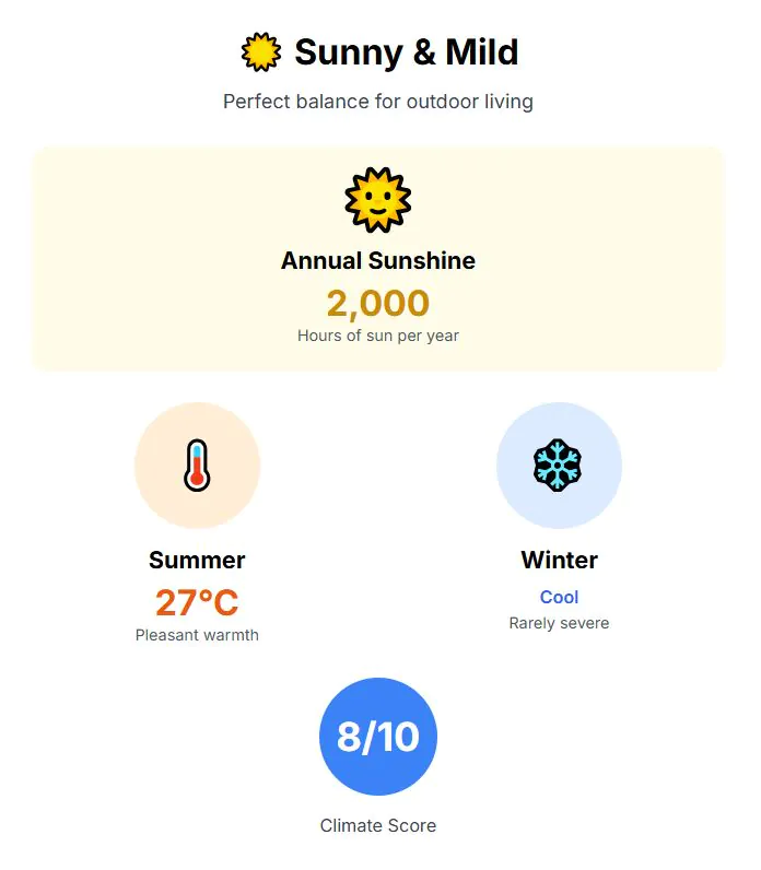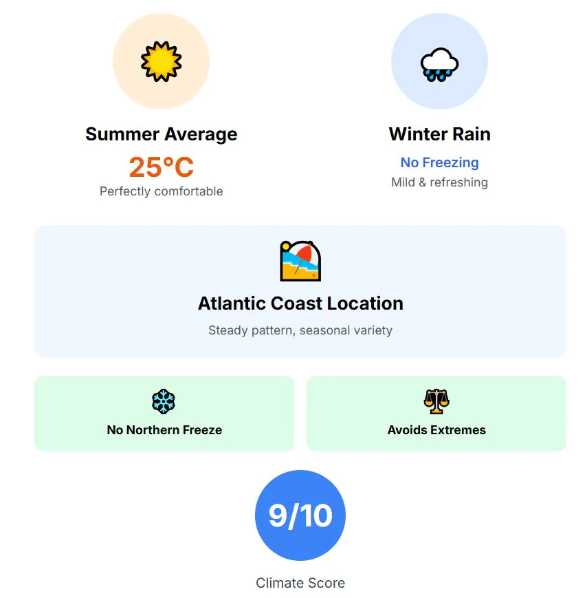 So this time, we’re going cooler—literally. 28°C summers, mild winters, and still very affordable
