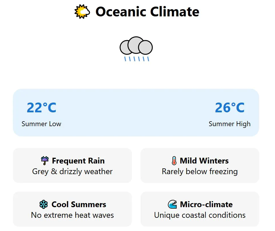 - Summers should stay below 30°C on average, which rules out locations known for extreme heat.