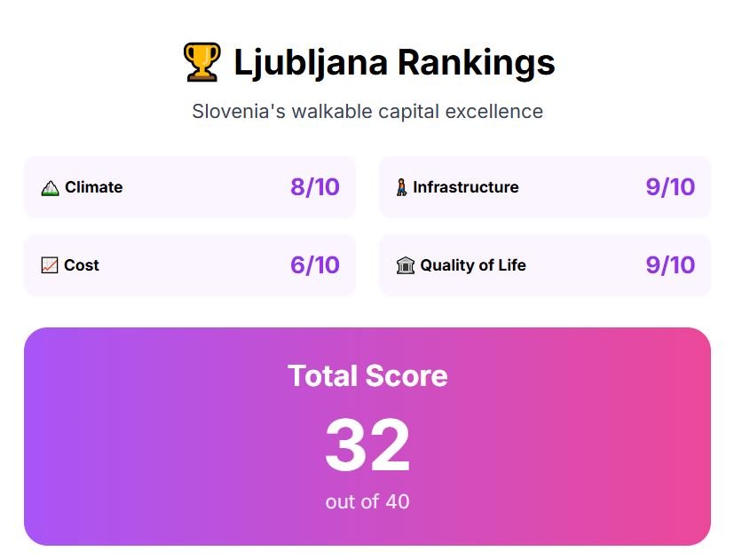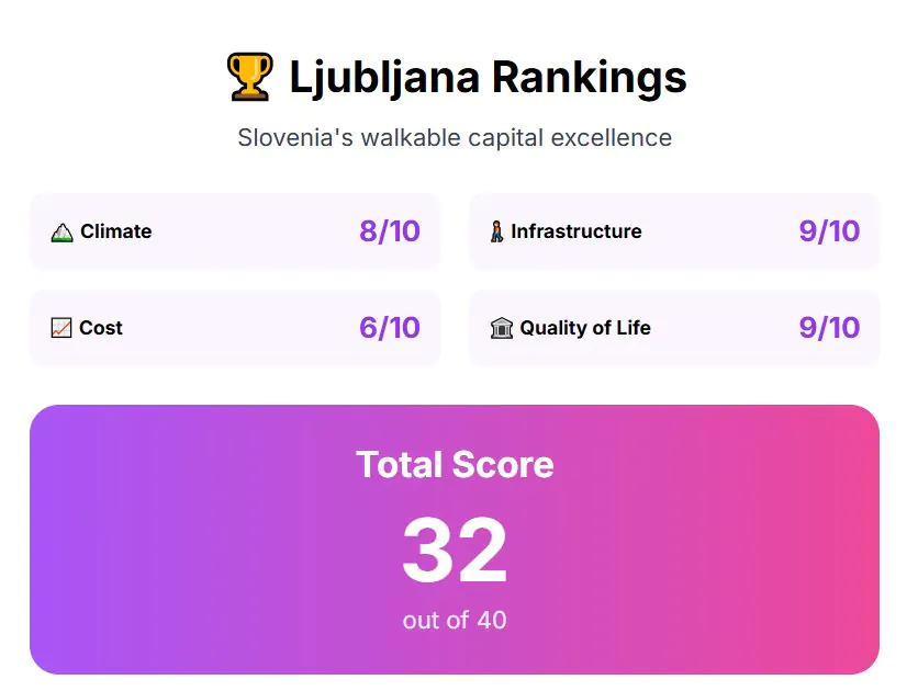 Adding everything together, Ljubljana receives a solid 32 points. Finally, we reach the city that ranked number one.