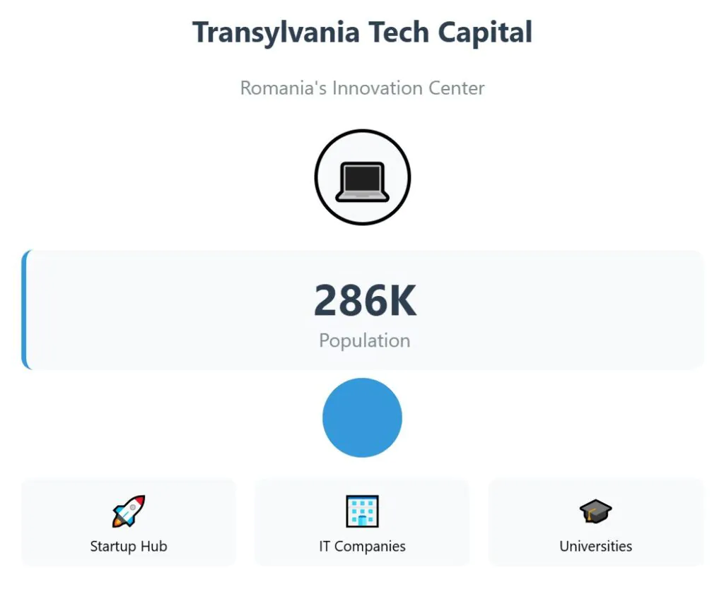 Cluj-Napoca is Romania’s main city in Transylvania, with a population of about 286,000. It is widely called the country’s tech and startup hub, attracting IT firms and new businesses.