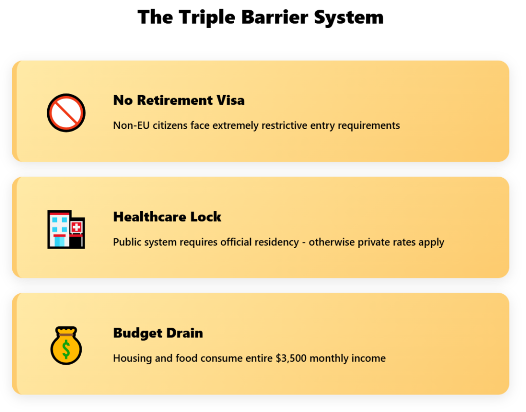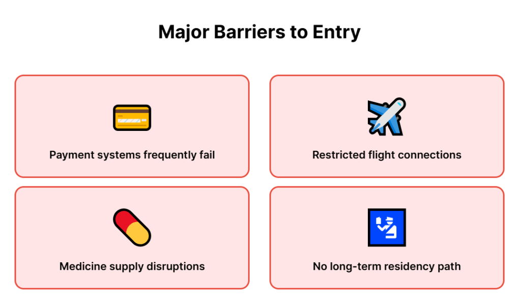 Residency is the final wall. While a 30-day visa-free regime once existed, that door is effectively closed for long-term settlers.,