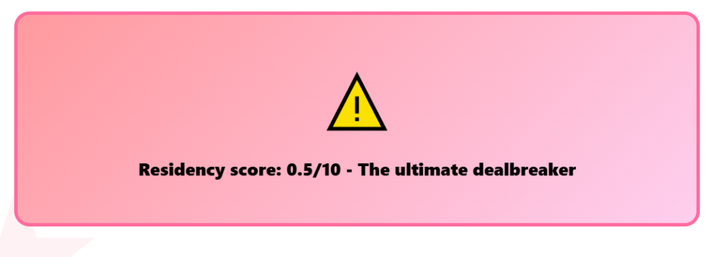Getting in is simple; the financial threshold for proof of means is low, so we gave it a score of 5.0 for Ease to Obtain Residency. But holding that residence permit places you in a gray zone.
