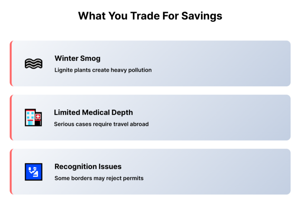 For serious conditions, an expat might need to travel to Skopje in North Macedonia, or Istanbul. Then we have the residency issue.