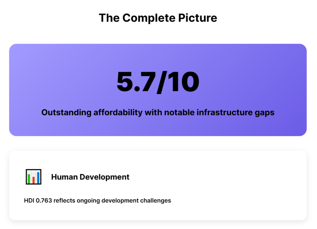 Public transport is dated, and that hits day-to-day comfort – despite the very low prices. On Quality of Life, the numbers also stay low.