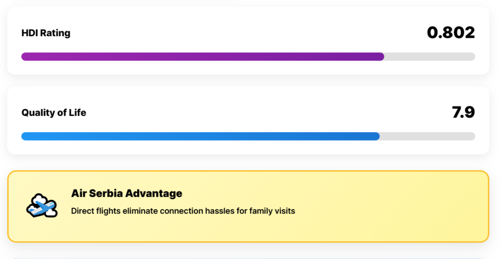 The travel piece is big too. Belgrade works as a regional air hub through Air Serbia, so you don’t need a connecting flight every time you visit family or handle paperwork abroad.