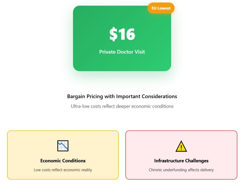 Bulgaria has private doctor visits averaging just US$16 — the lowest cost in the entire EU — but the bargain comes with important considerations.