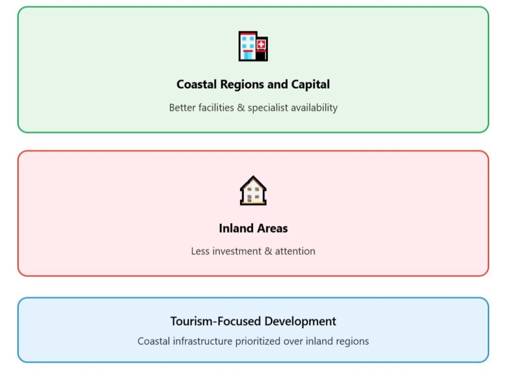 National averages hide the reality that healthcare quality varies dramatically between northern regions with world-class facilities and southern areas with chronic underfunding.