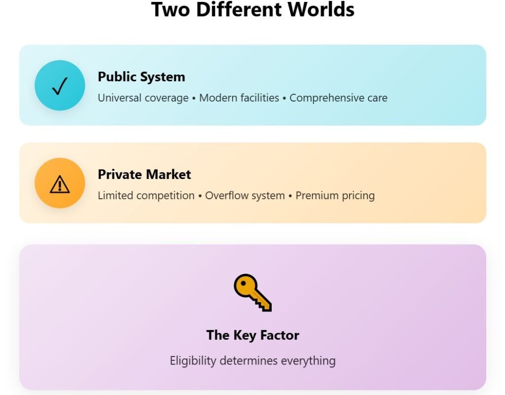 The private healthcare sector operates with minimal competition and serves primarily as overflow for the public system. This creates pricing that reflects Denmark’s high labor costs and limited private market options.