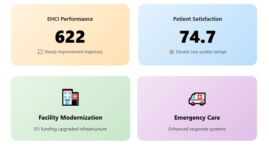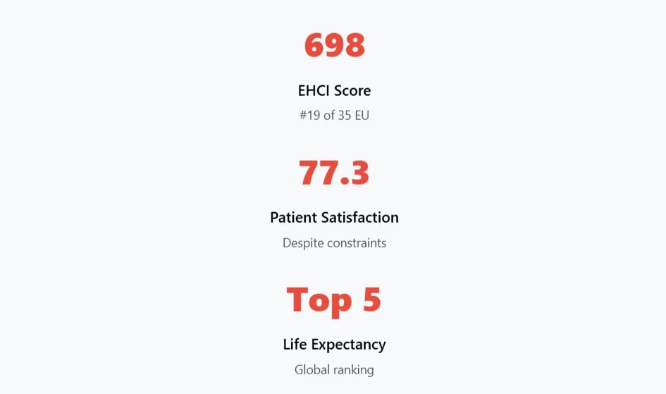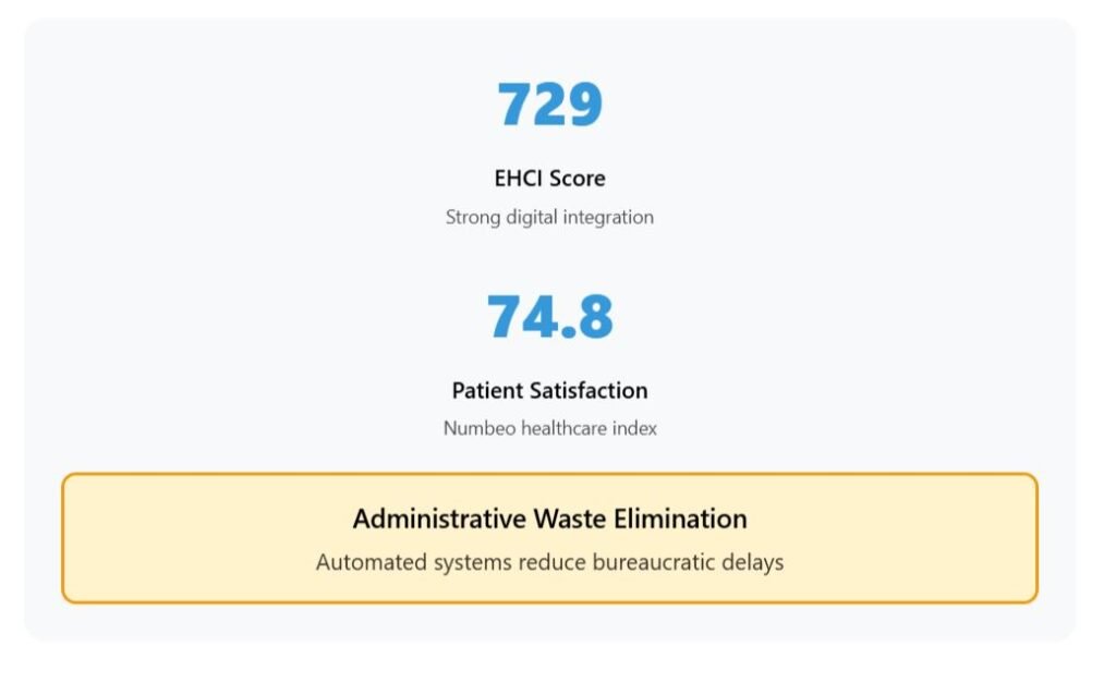 The EHCI score of 729 and Numbeo rating of 74.8 (among the 10 highest in the EU) reflect patient satisfaction with these digital improvements.