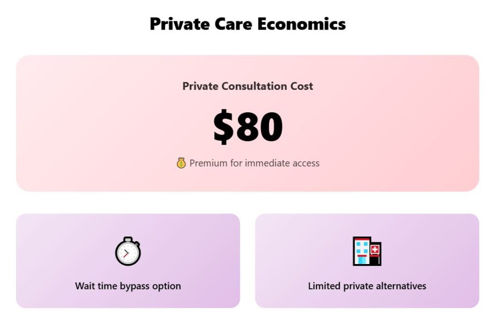 The public system offers free care at point of use but delivers notoriously long wait times that can stretch months for non-emergency procedures. Private healthcare provides faster access but costs significantly more than mainland European alternatives.