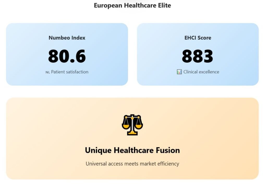 Opening the top 3, the Netherlands has created a unique healthcare model that combines universal coverage with market mechanisms, achieving exceptional patient satisfaction and clinical outcomes.
