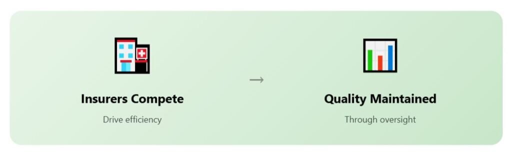 Competition among insurers drives efficiency while maintaining quality standards. The Netherlands, just like Switzerland, does not really have a “public” healthcare system, but multiple private providers that compete against each other.