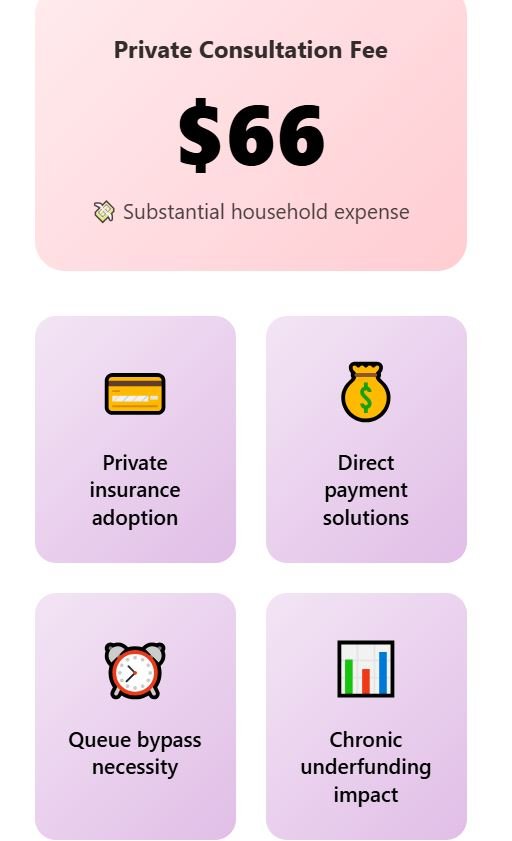 The system operates on informal payments called “gratitude payments” that turn free public care into expensive under-the-table transactions. Patients pay extra to doctors for better care or faster service, defeating the purpose of universal coverage.