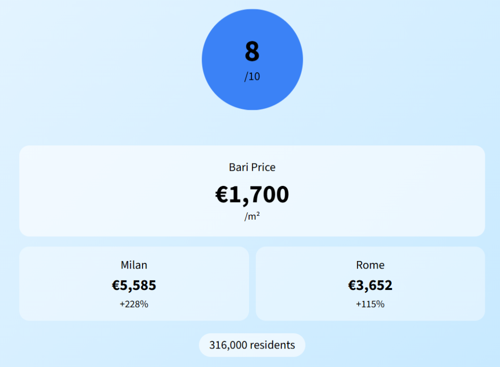 Remarkably, despite this world-class transit access, local real estate still averages a highly affordable €1,700 per square meter, which is shocking when compared to Milan at €5,585 or Rome at €3,652.