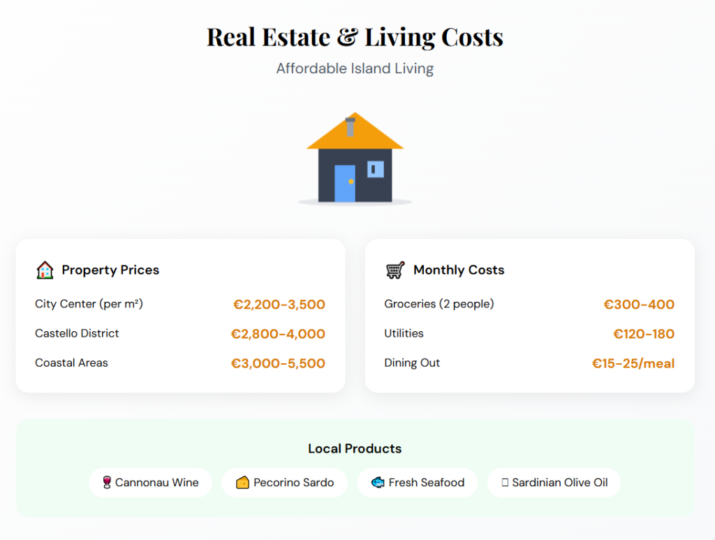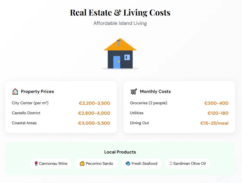 Real estate prices currently average between €1,100 and €1,500 per square meter, depending entirely on your chosen neighborhood. Even in highly desirable, well-located districts, it is perfectly possible to find a comfortable two-room apartment for less than €800 per month. This makes the capital an incredibly accessible entry point into the famed Sardinian lifestyle.
