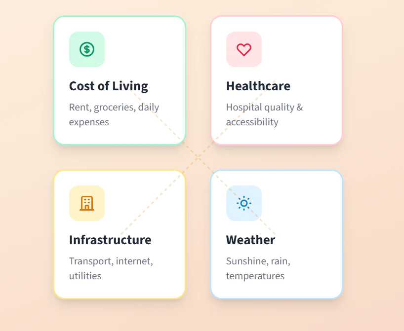 We built this ranking on four hard data pillars: cost of living, healthcare quality, infrastructure, and weather. When we filter Italian cities through these four criteria—the factors that truly matter for the hundreds of expats I have helped in Europe—we arrive at our Top 10 list.