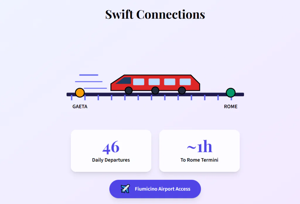 Due to this quick access to nearby urban centers and their respective medical institutions, Gaeta earns a respectable healthcare score of 7 out of 10. Surprisingly, transportation infrastructure is actually one of the biggest upsides of choosing this small town. The local Formia-Gaeta railway station operates approximately 46 trains daily heading straight into Rome Termini.
