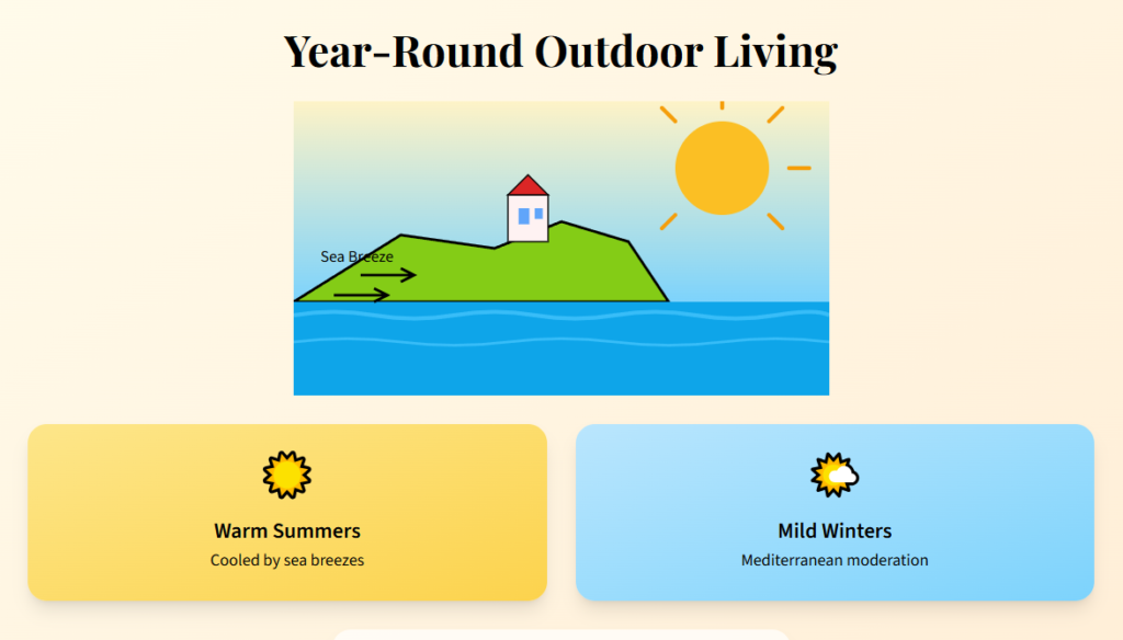 Geographically, the massive mountains directly behind the city effectively create a highly specific, protected coastal microclimate.