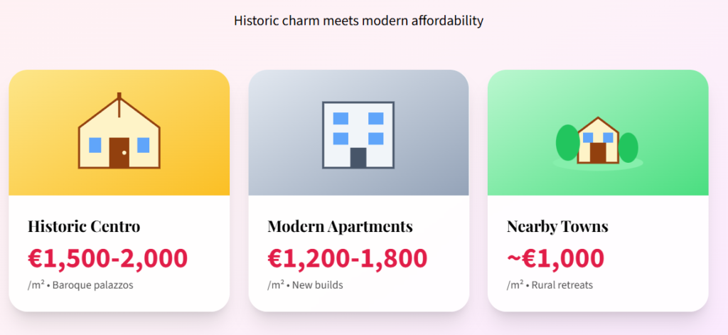 Italy’s massive national recovery fund is currently pouring billions of euros into modernizing southern infrastructure, and Lecce is aggressively securing its fair share of that developmental wealth. Despite this rapid modernization, central real estate still averages a very reasonable €1,800 per square meter. If you look just outside the main city center into the charming surrounding towns, you can routinely find gorgeous homes for as incredibly low as €1,000 per square meter.