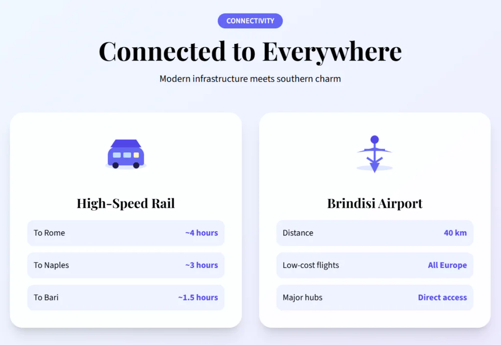 From there, highly affordable low-cost flights connect you directly to virtually every single major European financial and cultural hub. Massive metropolitan centers like London, Paris, and Berlin are all easily reachable in comfortably under two hours of total flight time. However, Lecce’s real developmental draw for 2026 is its highly lucrative newfound connection to Italy’s premier fast transit rail corridor.