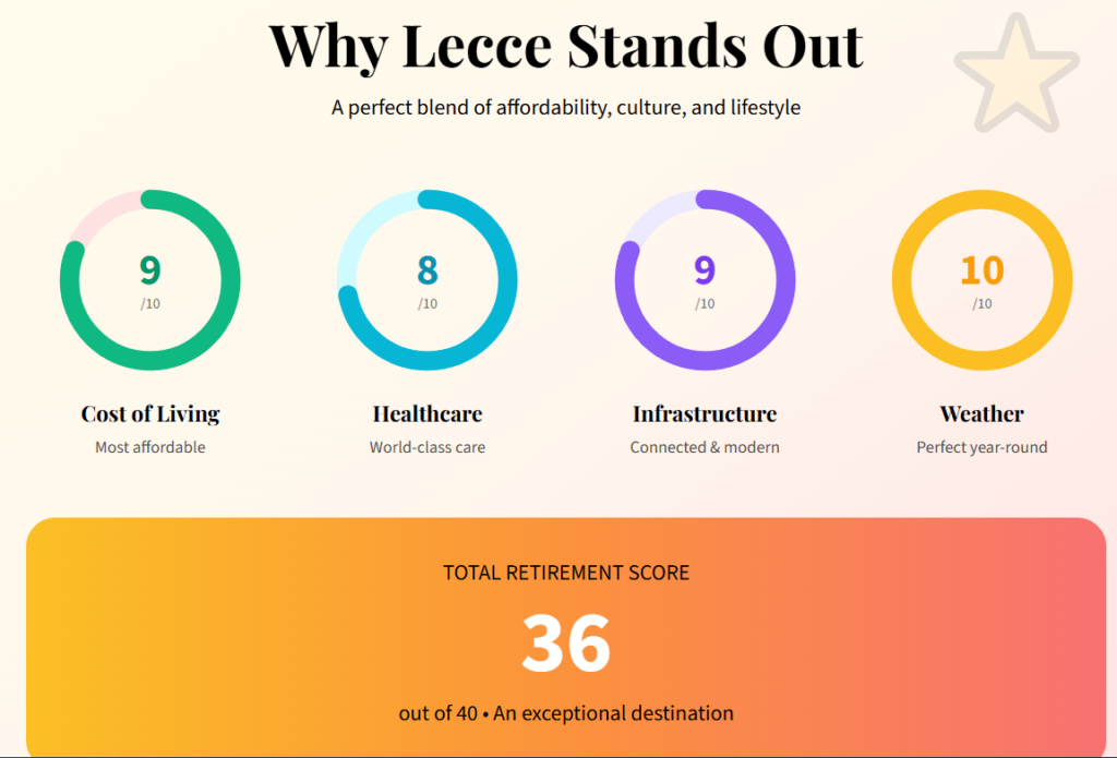 Ultimately, Lecce offers the absolute most perfectly balanced combination between affordable daily costs and premium quality of life anywhere in Italy for 2026. It is certainly not just some isolated small town sitting in the middle of nowhere; rather, it is a brilliantly connected major city overflowing with top-tier services, breathtaking historic beauty, and endlessly sunny weather.