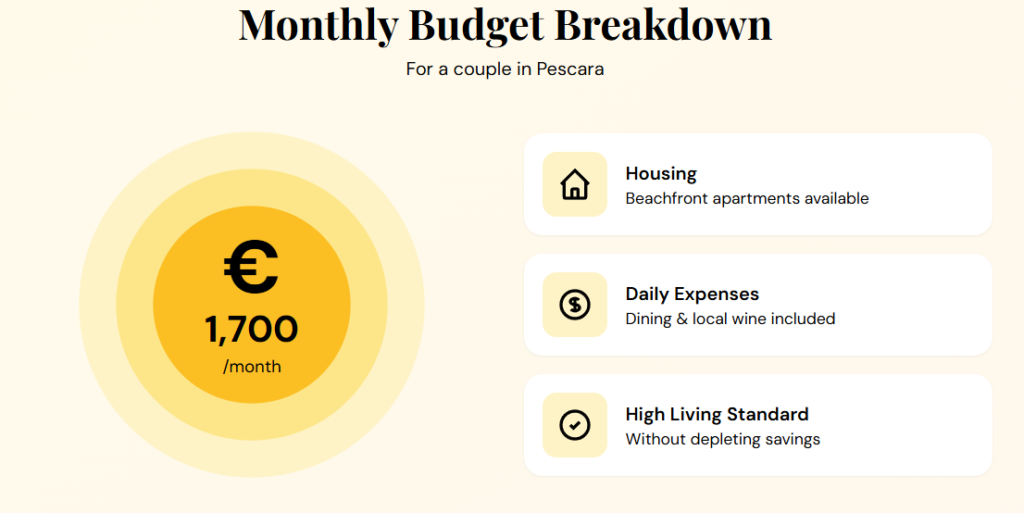 There are no massive hordes of tourists crowding the local streets or artificially inflating local prices just for Instagram photos. You will just find actual, welcoming Italian people living perfectly normal, authentic lives by the sea. Consequently, a couple can easily live a highly comfortable lifestyle in Pescara on just €1,700 a month, which easily covers rent, fresh food, utilities, and entertainment.