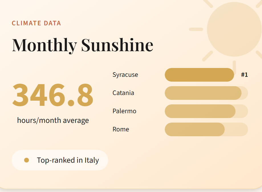 As these new railway upgrades come online, regional travel times are rapidly dropping across the entire island. While Sicily certainly maintains a stubborn reputation for being slightly behind the times with its rough roads and slow bureaucracy, the local weather is where Syracuse truly outshines the competition.