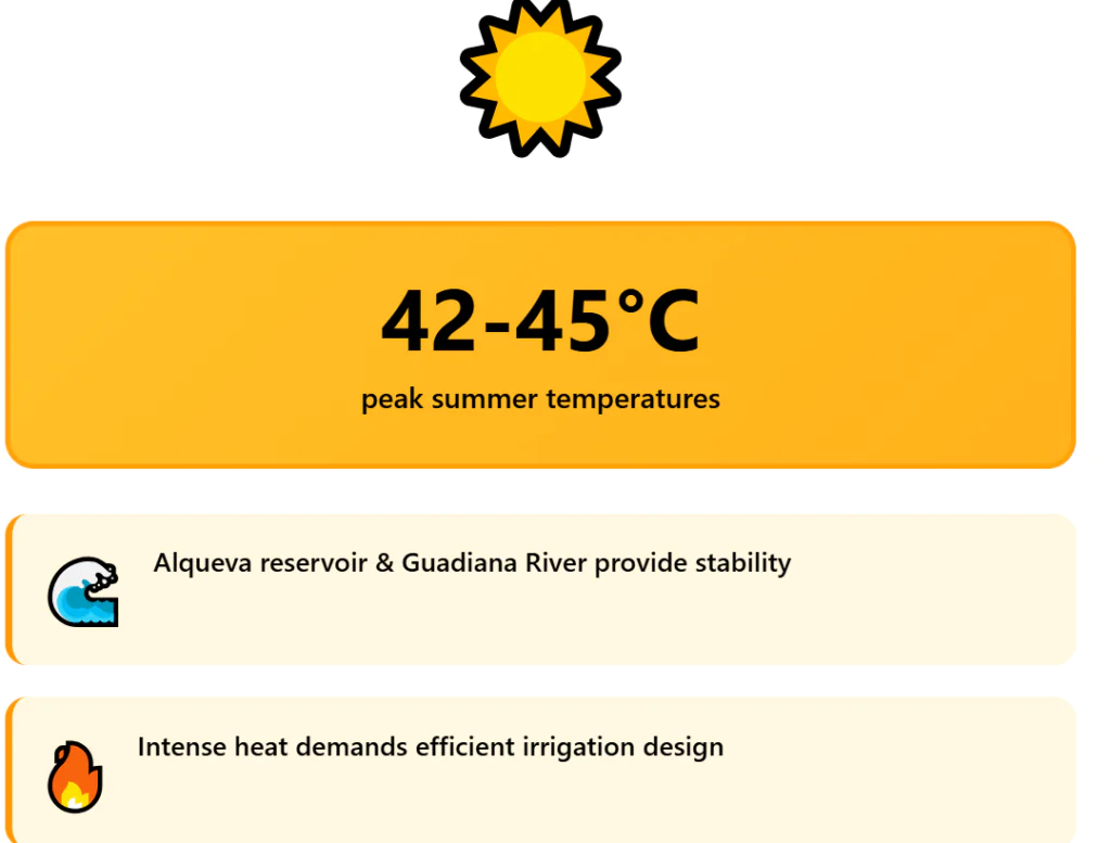 Summer heat is a real constraint. Temperatures often reach 42 to 45 degrees Celsius. That means water losses, crop stress, and higher energy use for irrigation.