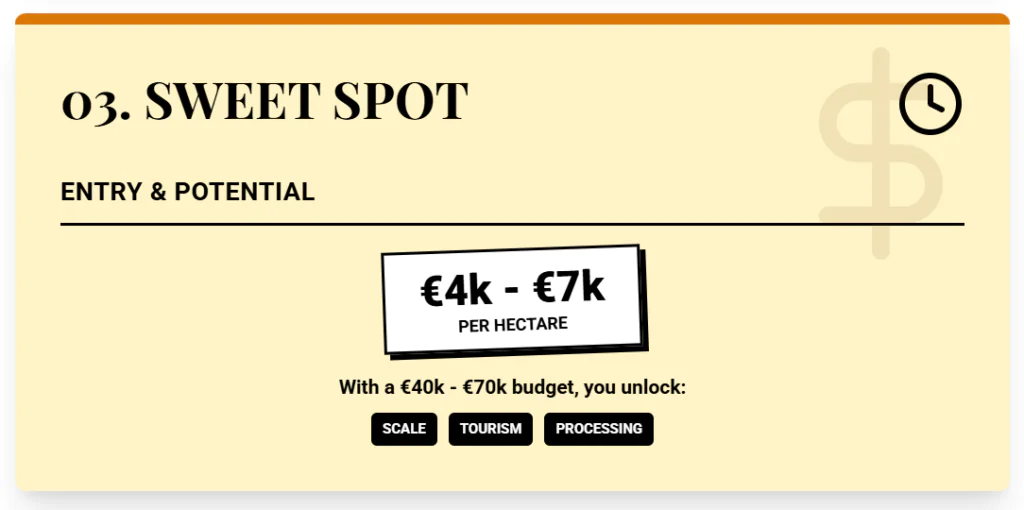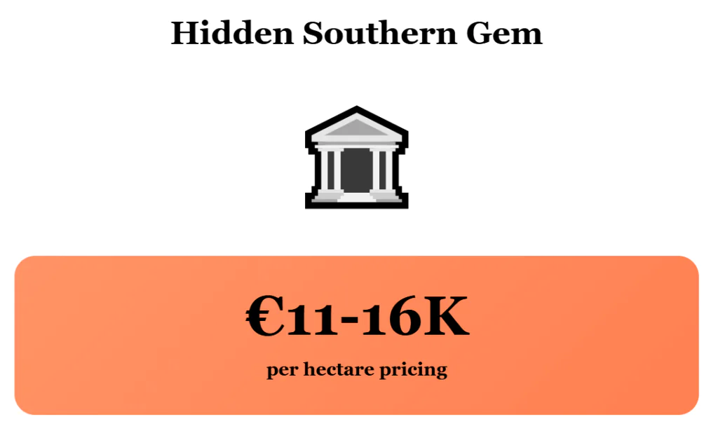 That places Basilicata well below Italy’s average price per hectare of farmland. Near the coast, where strawberries and citrus generate higher turnover per hectare, that price band looks competitive if you manage water and labor.