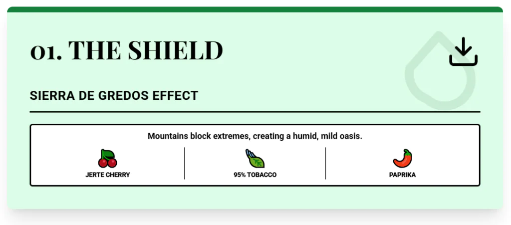 In those valleys, the Sierra de Gredos mountains block extremes. You get mild conditions that allow crops that fail in hotter southern zones. Tobacco grows there: Cáceres produces about 95% of Spain’s tobacco.