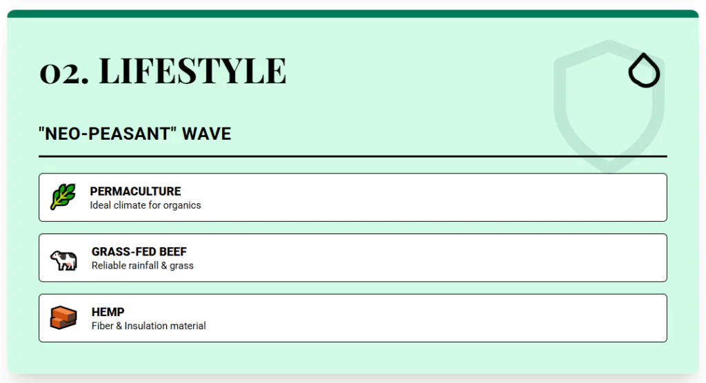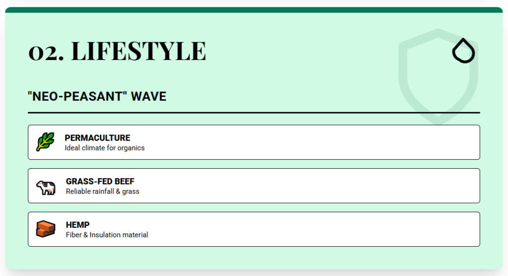 - Third, water and legal water rights. We favor regions where you can either access irrigation or at least verify a registered well or license.