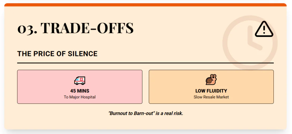 Job options outside farming are uncommon, so most newcomers either farm, work online, or commute. Liquidity is another hard factor. Because the buyer pool is small, the population is dropping, and many locals already own land, properties can take longer to sell.