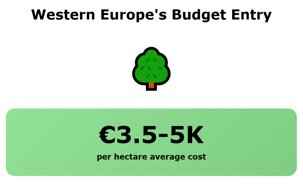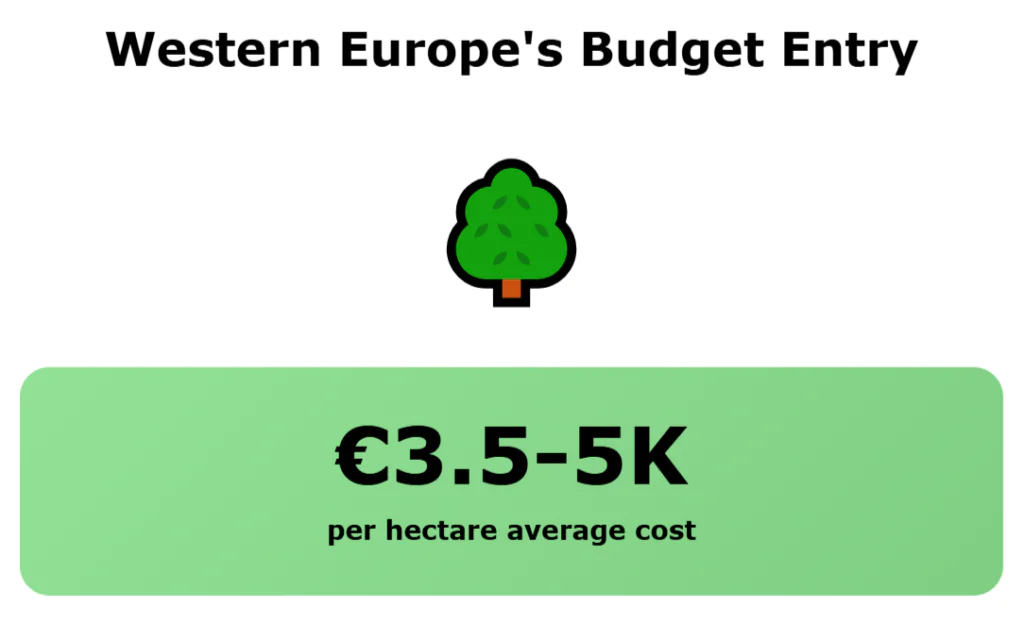 Land prices range from about €2,500 to €3,800 per hectare. At those prices, you can buy 20 hectares (50 acres) for the price of a studio in a big city. The climate works in your favor if you want grass-based farming.
