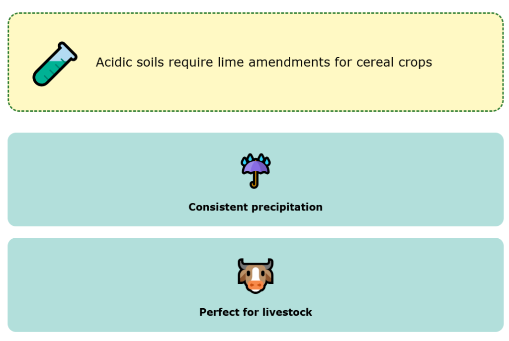 The Cons? The soil is acidic. If you want to cultivate cereals, likely you will need to use techniques like spreading lime.