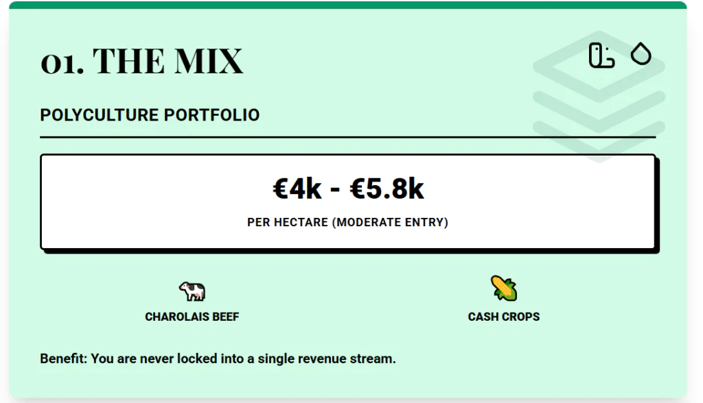 For Western Europe, that band is moderate when you factor in the range of uses: Charolais beef herds, Label Rouge poultry, maize, soy, and sunflowers, plus oak forests that supply wood for barrel-making. That mix means you are not locked into a single crop model; you can run cattle on pasture, grow feed, and keep some hectares in cash crops. The main technical constraint is the soil.