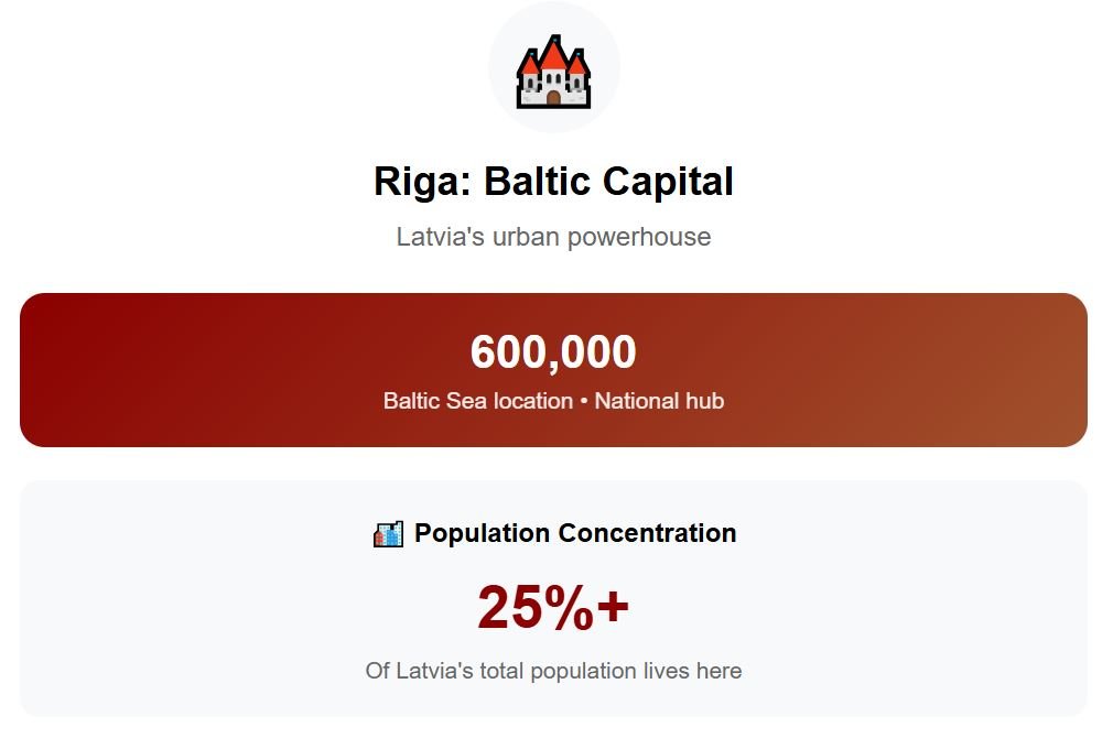 Here we exceptionally choose the capital Riga, since there are no other major cities. Riga has nearly 600,000 residents, so more than a quarter of Latvia’s total population.