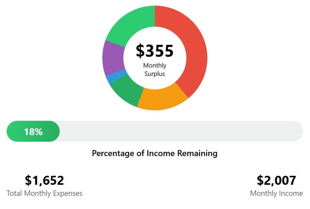 Overall expenses stay manageable at $1,435. For someone receiving $2,007, the remainder is $572.