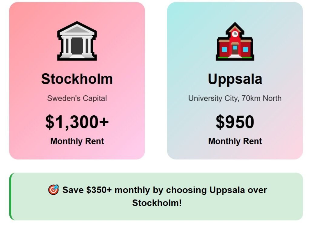 Uppsala is noticeably less expensive than the Swedish capital. A one-bedroom apartment costs around $950 here, compared to Stockholm where prices can exceed $1,300.