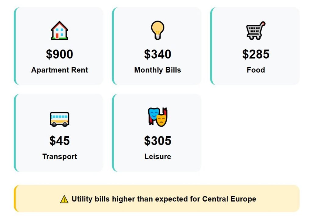 Rent averages $900 for a flat. Monthly utilities often reach $340, which is higher than expected for this part of Europe.