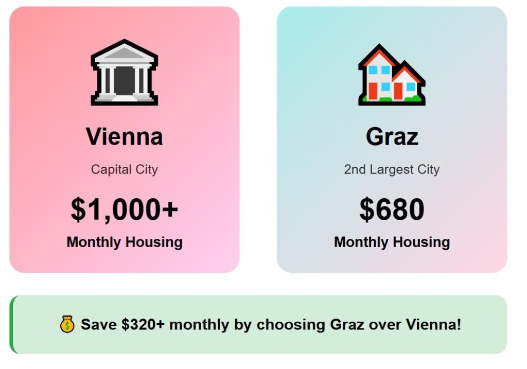 Graz is cheaper to live in than the capital Vienna, especially in rent, where housing costs under $680 compared to Vienna’s rates that often exceed $1,000. Rent is still the largest expense, but utilities also take a heavy share at $450, driven higher by cold winters.